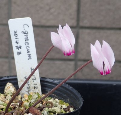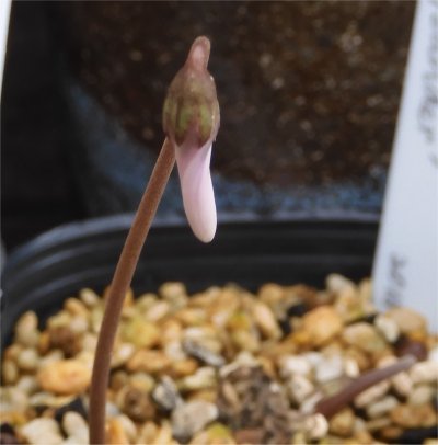 蓼科ネタの合間にちょこっとだけ大阪ネタ.元来何も無い季節だが,驚いた事にシクラメンのヘデリが花芽を持っていて(左画像:7/21撮影)本日開花を確認.(右画像:7/23撮影)