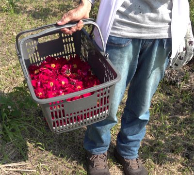 今朝わが家で収穫したロサ・ダマスク・セルシアナの花.