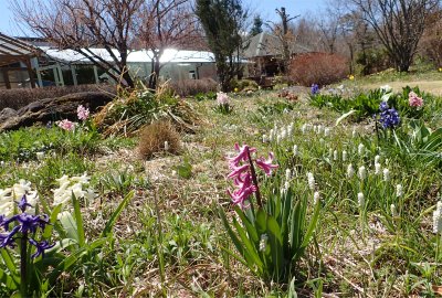 スノードロップ 一重・八重,スノーフレーク,プリムローズ,プシキニア(リバノティカ),サンシュユ,チオノドクサ青・紫,シラー・シベリカ,スイセン,プルモナリア,ムスカリ,キバナセツブンソウ,クロッカス,イフェイオン,クリスマスローズ,アネモネ・ネモローサ