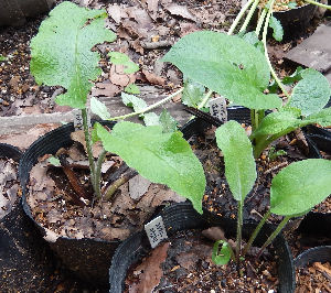 地植え組と大きめに根をカットした鉢植え組は1ポットを除いて新たな葉が出てきた.(^^)v