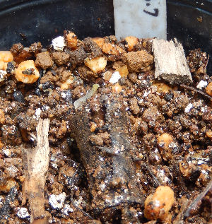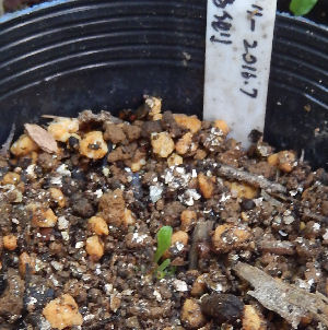 そして8/5,8/3に発芽が確認出来なかった大きめカットの1鉢で発芽しているのを確認.