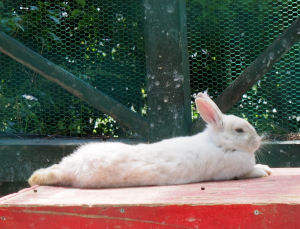 園内にあるうさぎ小屋の中,寝そべっているうさぎさんをズーム撮影.