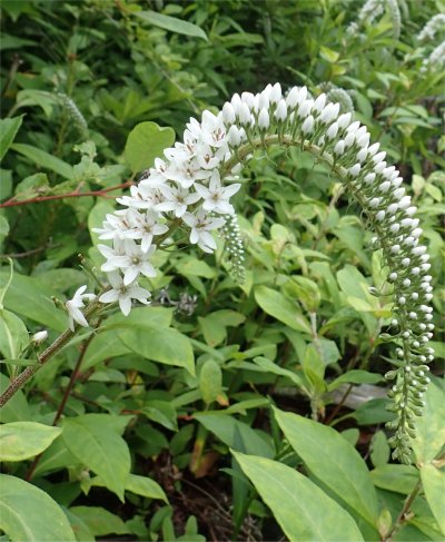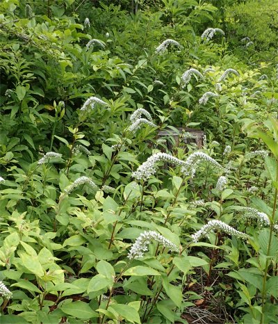 白い小花の集合で先端は垂れ下がり,遠目に見るとシッポみたい.