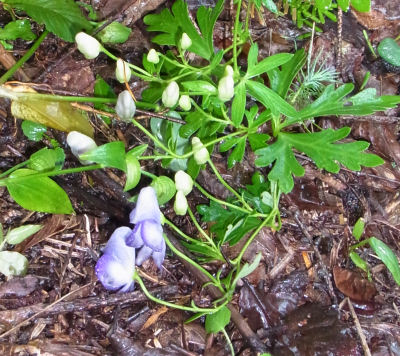 画像はアコニタム仲間(トリカブト仲間の一種).前回咲き始めていた株だがさらに咲き進んでいた.日陰が好きかと思いきや,案外日向の方が良いみたいで明るい場所の方が花数が多い.もうしばらく楽しめそう.(^^)
