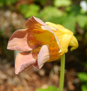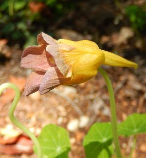 支柱があっても何のその,鉢から飛び出してのたうちながら地面で咲いているのはsmithii.季節問わず環境が合えば咲くタイプ.大阪は冬から春,蓼科では春から秋と気が向けば咲いている.