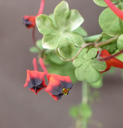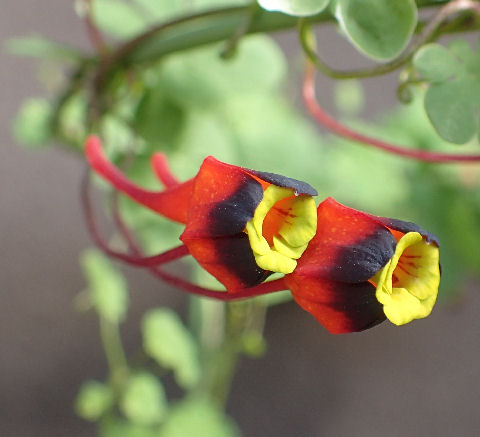 南ベランダ無加温ビニール温室内で開花中のTropaeolum smithii.