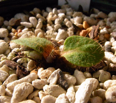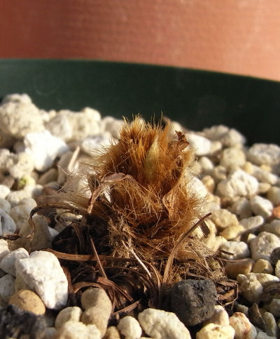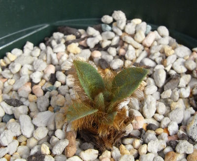 それでも何とか夏を越し,あまりのチビさに地植えにも出来ず秋に持ち帰った株.