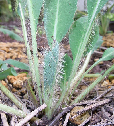 庭を見ると青ケシに新しい葉が出ていた.しかもすごい剛毛.(@_@)