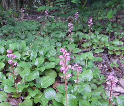 庭に自生しているベニバナイチヤクソウの群落.