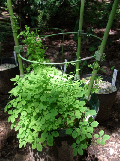春先から急激に葉が茂り始めたペンタフィラムだが,大阪の5月の気候で調子を崩し,その上害虫攻撃にも遭い,6月には枯れる寸前の悲惨な状況だった.6月に蓼科に連れてきた時には地上部がほとんど枯れていた.そのまま置いていたらそのうち新芽が出始め,再び成長する気になったようだ.