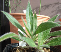 本当は巨大になるエキウムなので8号とか9号ポットがふさわしいのだろうが,南ベランダにはとてもそんな場所は無い.果たして黒ポットのままどうなるだろう…と思いつつ栽培している.超ミニ・エキウムでも咲いてくれればそれで良いのだが.