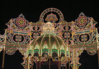 ルミナリエは阪神淡路大震災以来11年目との事だが,私は初体験.凄い人出だったが,友人によるとこれでも少ない方だったそう.ゾロゾロと人について歩いて行くと,ある地点で光の洪水に見舞われる.その瞬間,「おぉ~」と歓声が上がる.そして一斉にフラッシュが光り,カメラや携帯電話が高く持ち上げられ,人の波は一瞬止まる.「止まらないで下さい~.後ろから来る人が居ます~.」とメガホンを持った警備員が叫んでいるが,みんな無視.(~_~;) みんなが止まるのでこちらも止まる.ちょうど見頃の所で止まってくれるので,シャッター・チャンスには事欠かなかった.