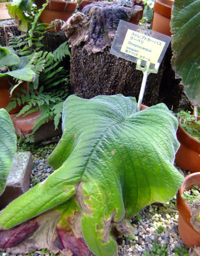 先日,兵庫県立フラワーセンターの温室で見た葉っぱ.