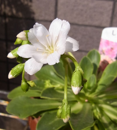 レウィシアと言えば今までオレンジ,ピンク,アプリコット…といった花色のものが咲いていたが,今回は白.購入時は花色不明だったので,色にこだわりなしに「救出」した気分だったが,白とは思いがけない色だった.もしかして珍しい色?