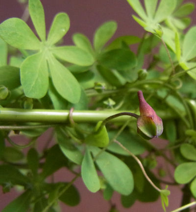 今期初のトロパで開花するかどうかやきもきしていたところ,ようやく花芽が色づいてきた.トリコロールのように背は赤いが,トリコロールほど距は長くない.