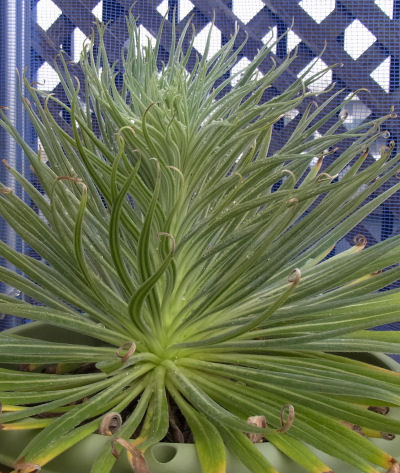 種まきは2005年…はるか昔.ずっと6号鉢で過ごしていたので大きくなれなかったようだ.ゴミバケツ鉢に移住してからグングン成長し,今や鉢から葉がはみ出すほどになった.