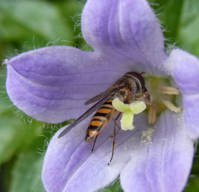 ふと見ると訪問者.何をしているのだろう?としばらく見ていると,どうやら花粉をセッセと集めているようだ.足を使って下の花弁に落ちた花粉を集めたり,花柱に付いた花粉をしごき落として集めたりしていた.集めた花粉はどこへ?食べているのか?残念ながらそこまでは見えず.