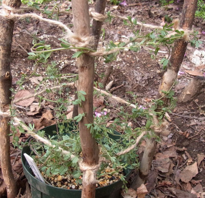 4本の枯れ枝と麻ひもを使って支柱を立て直したsessilifolium.