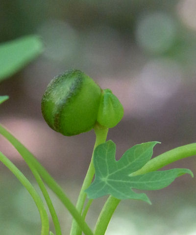 冬~春と夏との違いは種の付き方.冬から春にかけて,花が咲くたび,そのすべてに種が出来ていたのだが,今や種はほとんど出来なくなった.場所が変わってポリネーターの関係もあるかもしれないが,暑いところで株の体力を維持するためには種は付けたくない,という意志が働いているのかもしれない.そんな中,ほんの1つだけ,種を見つけた.