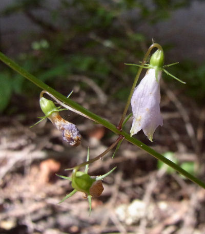前回大阪に戻る日にお隣で咲いているツリガネニンジンを発見したが,今回は全然違う場所.嬉しいことに敷地内で自生していた.以前ミヤマウズラの自生を見つけた場所の近く.間違えて抜いてしまわないよう,さっそく名札を書いて挿しておいた.