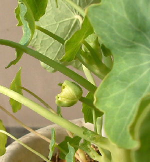 無加温・温室内をふと見ると,超八重ナスタに花芽が付いていた.
