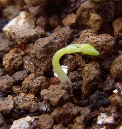 最近放り込んだのはsmithii,speciosumあたりか.smithiiは別に小鉢もあるので,もしこの芽がsmithiiだとするとかなり前の種ということになる.