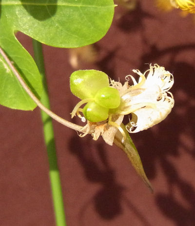何故かというと,三段支柱にした途端に茎の伸びが止まったから.(~_~;) どうやら種作りに精を出してエネルギーがそちらへ回っているらしい.
