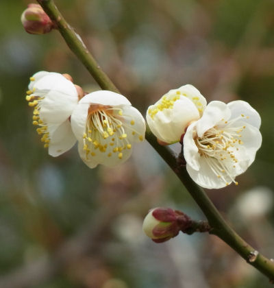 自然文化園の梅林では梅の開花が進んでいた.19日から3月半ばまで梅まつりが開催される.