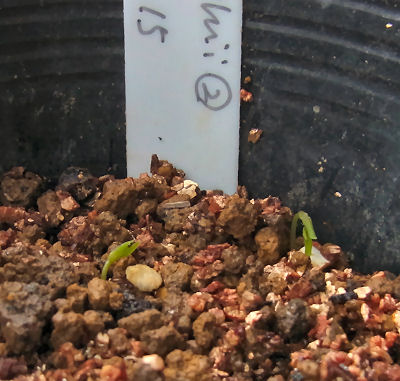 大鉢で発見された発芽・発根5つのうち2つはspeciosum,2つはsmithiiと判明した.残る1つは何だろう?