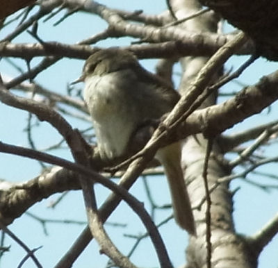 散歩中に見つけたウグイス君.いつも声はすれど姿は見えずなのだが,たまたまごく近くで鳴いているな~と思い注意して木を見ていたら,ついに発見.