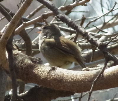 ウグイスは元来警戒心が強いが,この子は平気だった.コンデジ10倍ズームで撮影.澄んだ声に癒される.