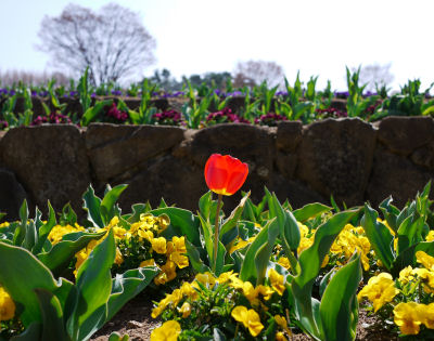 一緒に植えられているビオラは見事に咲いていた.園内はビオラの香りでいっぱい.