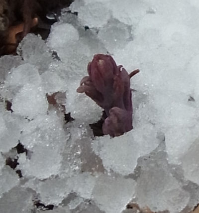 午後から曇り雪が舞い,街に出かけていた間にヒョウが降って積もっていた.4時過ぎの気温2度.寒い.