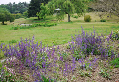 左は庭で咲いているメド-セージ.