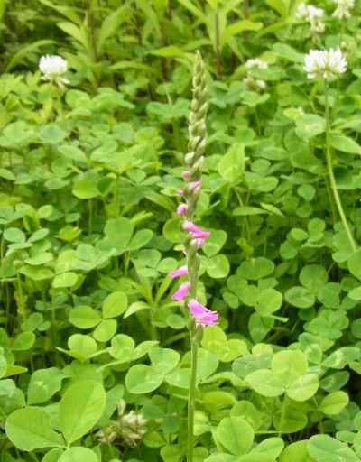 去年同様複数のネジバナを見つけたが,どの個体もやはり草に覆われていた.が,場所によって草が異なる.イネ科の雑草のところやクローバーのところなど.クローバーは背が低いのでネジバナも余裕で咲いている.イネ科の方は明らかにネジバナの方が劣勢で必死に頑張ってる感じ.生存競争は厳しい.