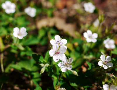 庭では自生しているゲンノショウコが満開.こちらのゲンノショウコはたいがい白花.