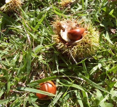 拾ってはみたものの,こんな大きさだと皮むきが大変なので記念撮影だけにとどめておいた.(^^; 今シーズン,栗御飯を味わえる日は来るのだろうか??