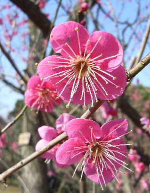 さすがに梅林では香りを楽しみたいので,花粉症用のマスクを外している.それでも今年は香りが弱い.いつもなら花の近くではふわっと香りが漂うものなんだが….もう少し全体的に咲き進まない事には「香り立つ」という表現には至らないのだろうか,それとも本当に今年は香り自体が弱いのか.何やら満足感の少ない梅見となった次第.