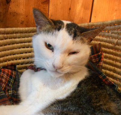 店内ではストーブが焚かれ,すぐそばに置かれたバスケットではスギナ君がくつろいでいた.ちょうどオーナーの萩尾さんがおられたので聞いてみると,もう10年以上ここに居るんだとか.そういえば私達が蓼科通いし始めた時からスギナ君はここに居た.若い頃は店先で招き猫をしてお客さんに可愛がってもらっていた.今はストーブの番.平和な風景.