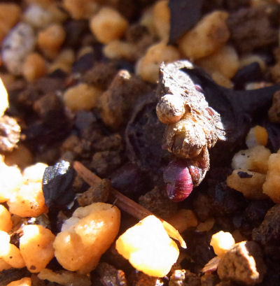 左から野田園芸の株,新潟産の株(これらはブーママさんちからやってきた),そして自家製(^^;の株.これは株分けで誕生した子.ダメモトで親株から強引に引っぺがした.(^^;
