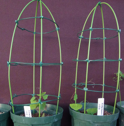スリット5号鉢に細長い支柱.ラン用支柱(針金)を使って自作.