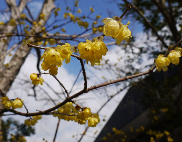 画像はロウバイ.春を呼ぶ黄色の花.蝋細工のような花で可愛い.花に鼻を近づけると…春の花に似合わない濃厚な香り.まるでジャスミン風.かなり強い香りにビックリ.