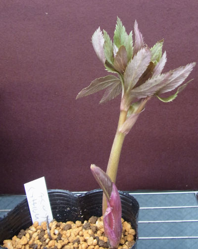 まずポットから出してみる.やけにポットが新しい.根が丸めて入れられた雰囲気.きっと展示即売会直前に新しいポットに入れ替えた感じ.