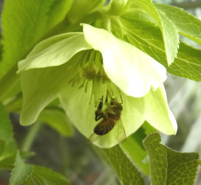 気温上昇で蜂さんがブンブン.メインはトロパだけど,たま~にヘレボにもとまる子が居る.