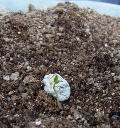 北バルコニーの大鉢でまた1本の発芽を確認.