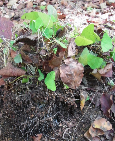 これはアヤシイ…と掘ってみたらやはり発根していた.案外容易に発根するようだ.このまま置いておいたら寒さで枯れてしまうので,とりあえずポットに埋め込んだが…枯れ葉と枯れ枝の処理が面倒でどうしよう…?状態.