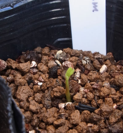 さらに種まきポットを見ると2個ほど芽割れしているものを発見.