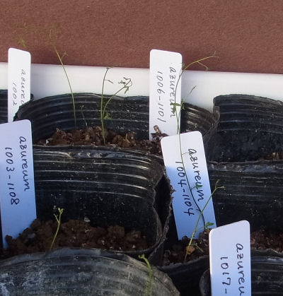蓼科から連れて帰ってきたトロパの種まきポット.