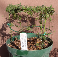 急遽別のポットに移植作戦実施.スポッと抜いて根鉢を崩さず別の鉢にそのままスポッと入れた.ついでに中段の支柱をワイヤーで作成しモジャモジャの茎の一部を這わしておいた.しばらく南ベランダで養生してもらおう.