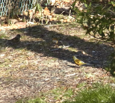 先日散歩の帰り,公園で野鳥の群れが何かをついばんでいるのを確認.大きさはスズメくらい.近づくと一斉にサーッと飛び立つ.その時はあたり一帯が黄緑色に染まるかのように見えた.